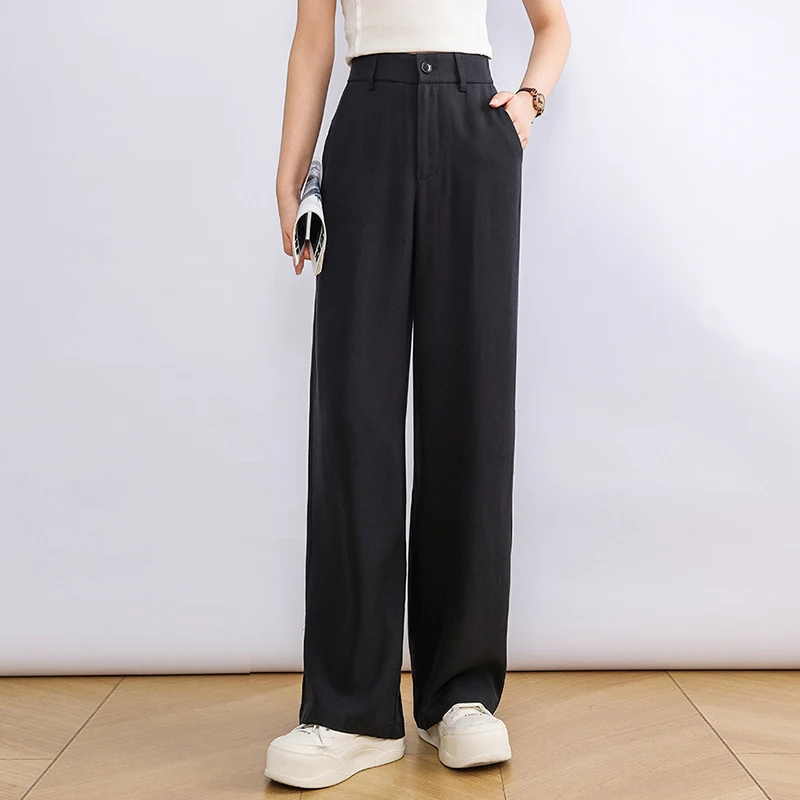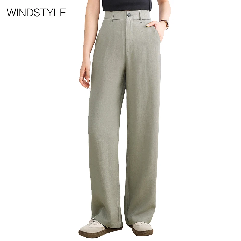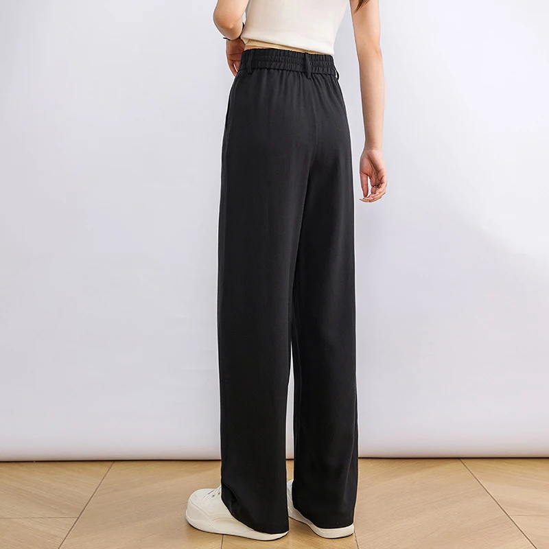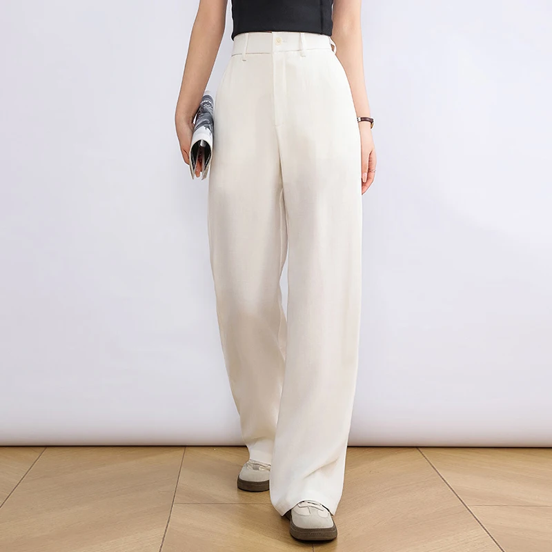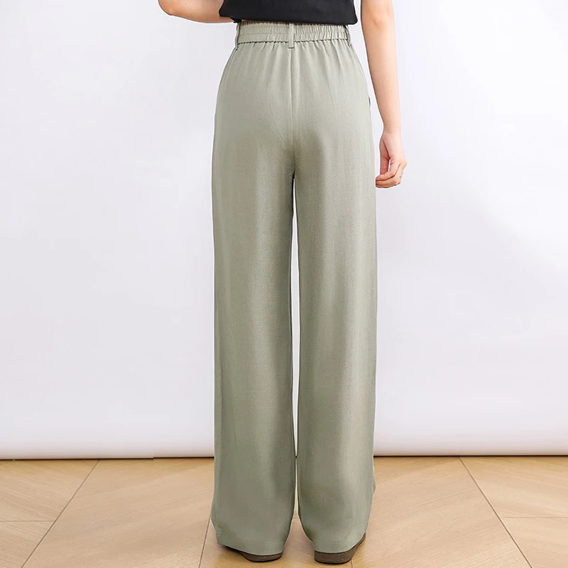 Women's Custom for Tencel Linen Wide Leg Pants Summer Straight Suit with Back Elastic Formal Style
